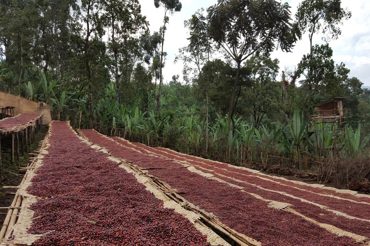 標高 1,950m を超える山奥の水洗工場は、朝晩は長袖が必要で、朝は霧が立ち込めるほど気温が下がります。そのような環境下なので、日中も快適な気温くらいまでしか上がりません。そのため、太陽の光を十分に浴びてゆっくりと乾燥されます。