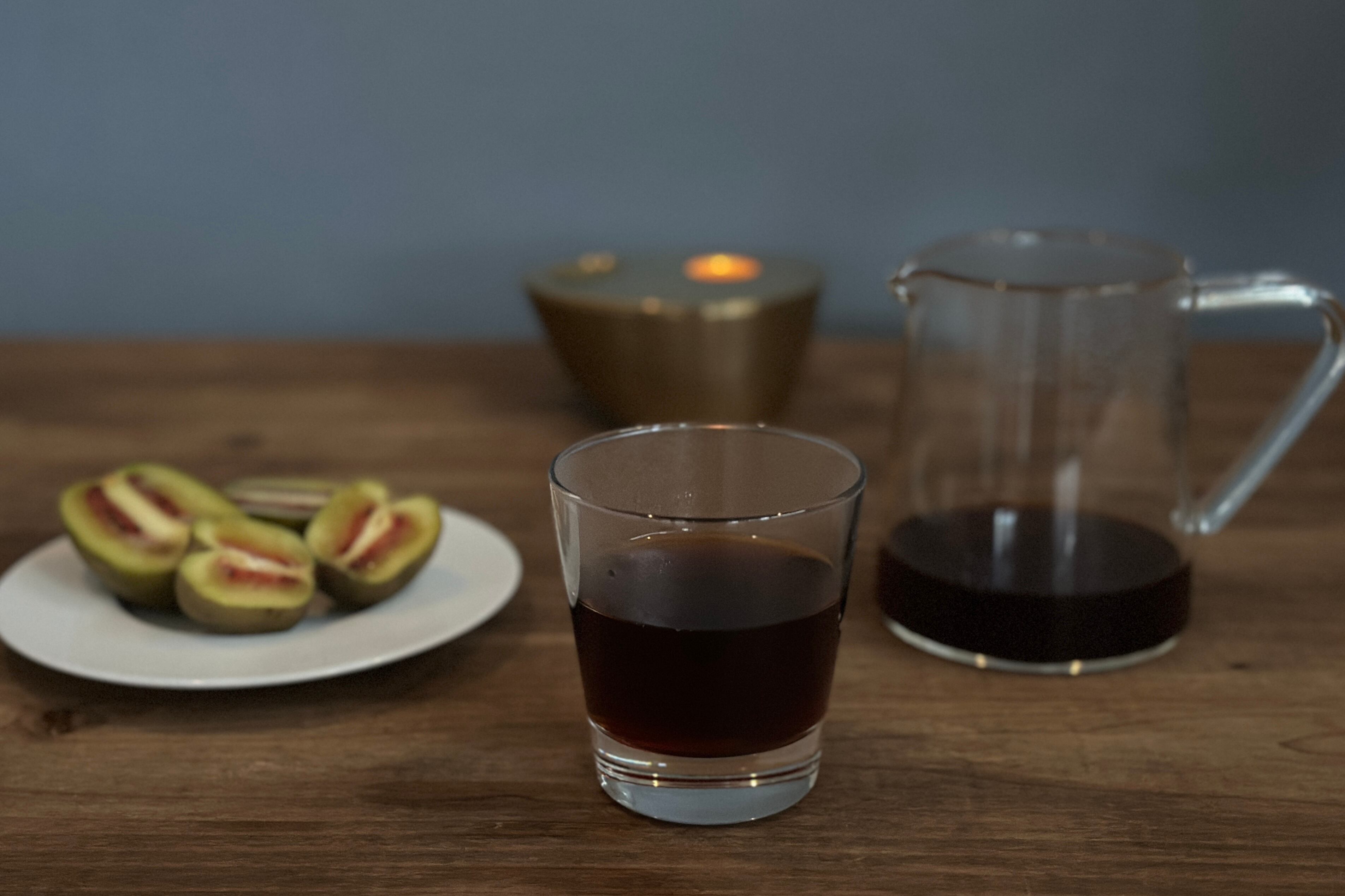 プラムの甘酸っぱいフレグランス、口に含むとメロンやキャラメルのニュアンスがあり、さらにウィスキーのようなビターな余韻も感じられます。